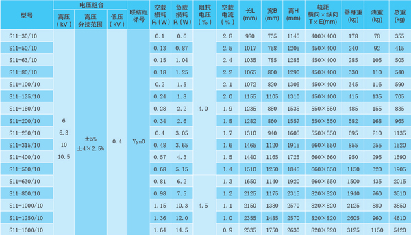 10kV級S11型30-1600kVA雙繞組無勵(lì)磁調(diào)壓變壓器