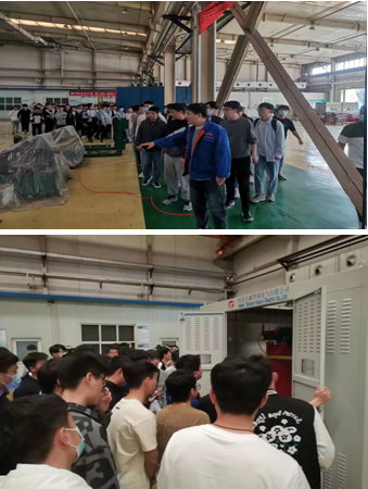 2023年4月19日上午,河北水利電力學院劉國亭教授、劉輝老師等校領導及老師帶領機電工程專業(yè)學生100余人,來我廠參觀學習交流。大家依次參觀了線圈車間、套焊裝配車間、試驗站及成品區(qū)。參觀過程中我公司工作人員對各個生產(chǎn)工序、各類型產(chǎn)品進行了詳細講解,并對師生提出的問題耐心解答,使廣大師生對變壓器、配電柜等電氣配電產(chǎn)品的生產(chǎn)及應用有了更加直觀深入的了解。